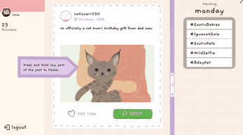 Chill and relax as you scroll through your animal filled social media posts, surely what you repost won't have real consequences... right? Watch the gameplay trailer.